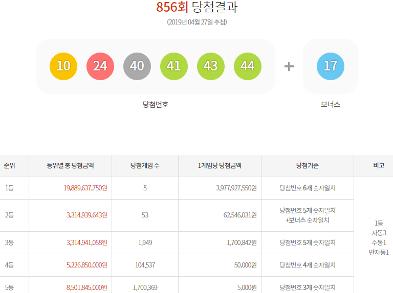 2 days ago · 25일 발표된 982회 로또 1등 당첨번호는 5·7·13·20·21·44 이다. Sep 18, 2021 · 18일 오후 추첨된 로또보권 제981회 1등 당첨번호 '27·36·37·41·43·45'번, 2등 보너스 번호는 '32'번이 뽑혔다. 로또 982회 예상번호 당첨패턴 분석, 로또982회당첨번호 로또983회 예측 복권 1등 로또예상번호 확인, 로또 1등 2등 당첨지역 로또번호645 추천! 982회 로또 번호 조합(고정수) 14. 로또복권의 당첨금 지급기한은 지급개시일로부터 1년 (휴일인 경우 익영업일)이다. 2등 보너스 번호는 '33'다.6개 번호를 모두 맞춘 1등 당첨자는 8명이다. Guest 2021.09.23 12 :38:02 982회 로또 번호 조합. Aug 19, 2021 · 로또982회 당첨번호 조회 로또981회 1등 13명, 20억원. 5개 번호와 보너스 번호를 맞춘 2등은 81명으로 당첨금은 4977만1699원이다.5개 번호를 맞춘 3등 2931명. 2 days ago · 파이낸셜뉴스 25일 제 982회 동행복권 로또 추첨 결과 '5, 7, 13, 20, 21, 44'가 1등 당첨번호로 결정됐다.